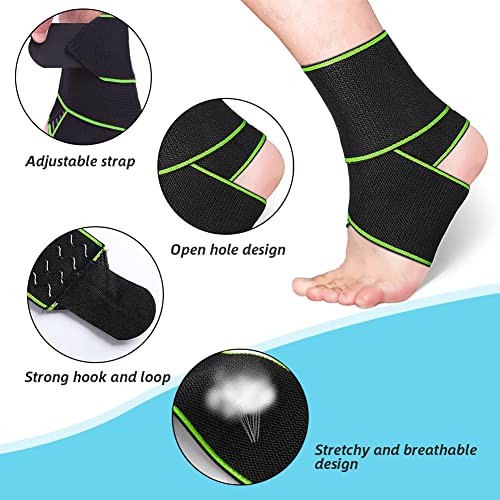 MEARTOPS Elastico Alla Caviglia Fasciatura Regolabile Traspirante Tutore per caviglia per Sport Dolori Articolari Distorsione Affaticamento per Uomini e Donne (bordo verde, nero)