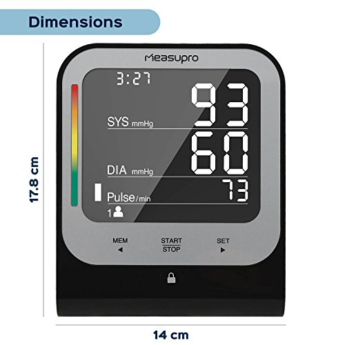 MeasuPro BPM-A70 Pro Touch braccio Digital Monitor di pressione sanguigna con rilevatore di frequenza cardiaca, indicatore di battito cardiaco irregolare, sveglia e funzione di memoria, ampio display LCD retroilluminato, certificato CE e FDA