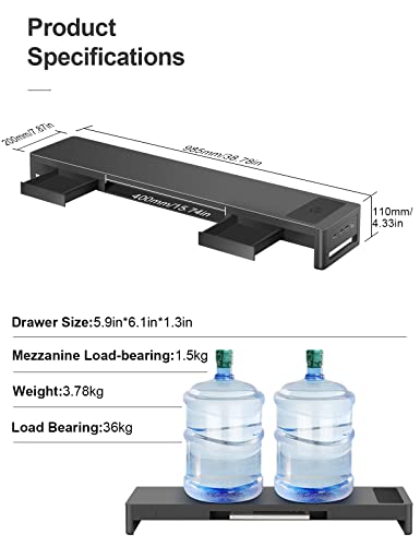 【Design multifunzione 3 in 1】 L'unico supporto per monitor con cassetto, ricarica wireless ed extender USB nel mercato attuale, migliorando notevolmente la tua comodità e praticità nella vita quotidiana e in ufficio. Realizzato in materiale metallico di alta qualità, questo supporto per monitor può supportare oggetti fino a 30 libbre e 2 monitor fino a 27 pollici come IMAC.