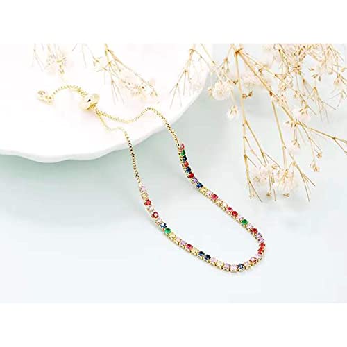MEBOM Delicate Rainbow Tourmaline Ionic Bracelet, Adjustable Color Crystal Zircon Healing Bracelet, Anti Fatigue Gemstone Chakra Bracelet for Womens (Silver)
