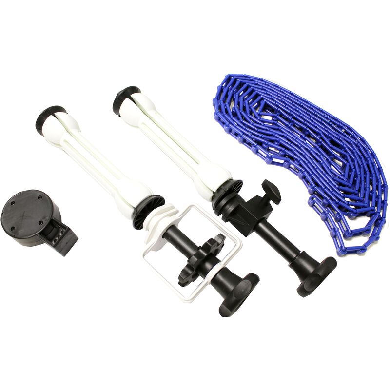 Meccanismo di alberi o sistema di avvolgimento con catena per l'avvolgimento manuale. Consiste di 3 parti: i 2 assi, la catena e il peso della catena. I due assi sono quelli che si uniscono al tubo dove il fondo è fissato con il supporto. Questi assi consentono la rotazione del fondo per il suo rotolamento. La catena è realizzata in plastica blu, facilmente configurabile in lunghezza dall'utente. Il peso passa attraverso la catena in modo che sia tesa. Deve essere usato insieme ad un supporto (riferimenti # EE5x) e con un tubo di fondi (riferimento # EE61).