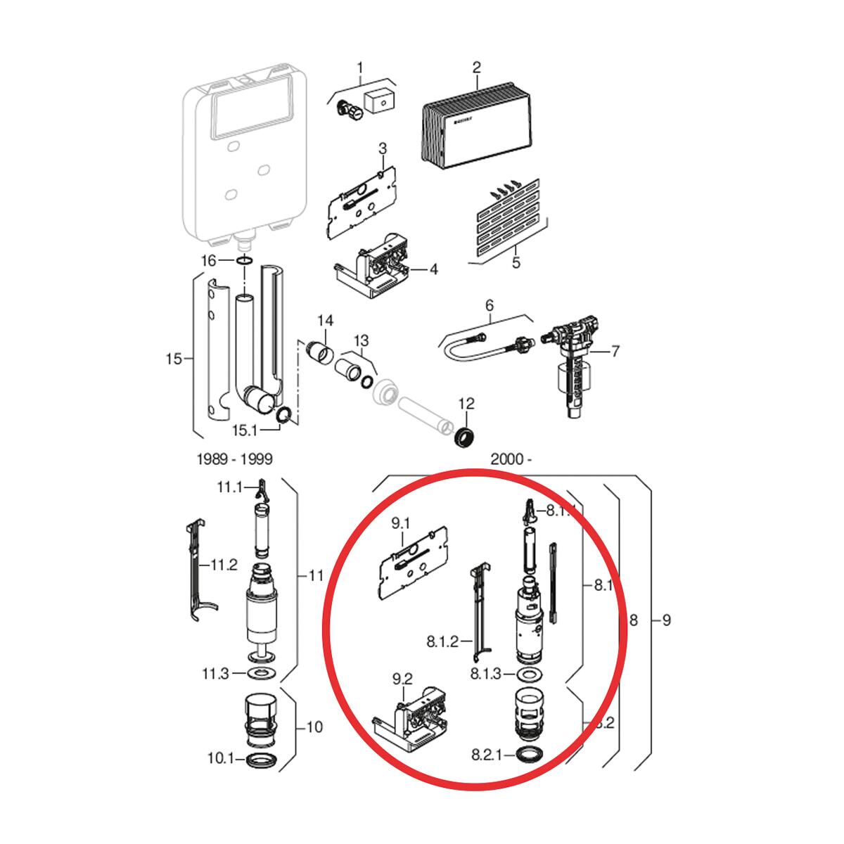 Kit di sostituzione Twico per cassette 110.700 - 110.750 Set trasformazione tasto STOP a risciacquo a due quantità - 240.516