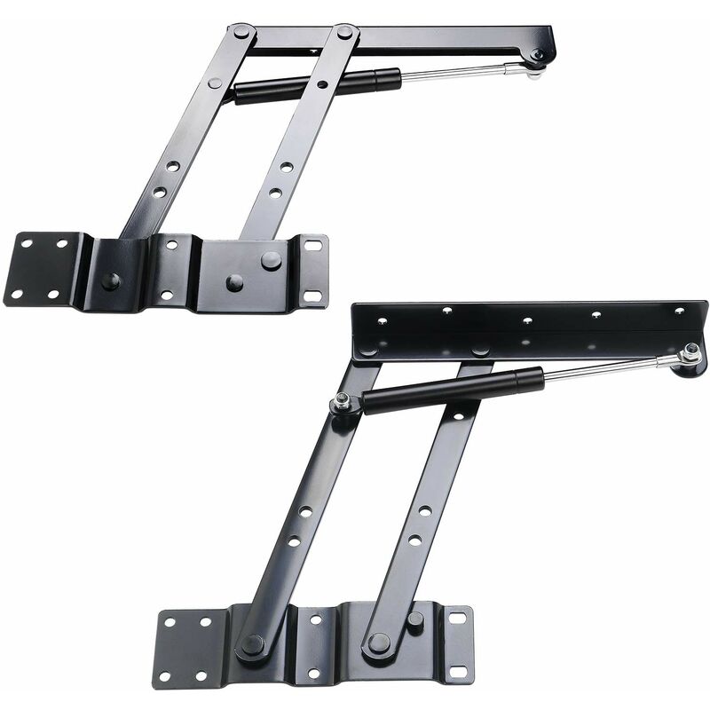 Risparmio di spazio: il telaio di sollevamento a molla pneumatica del tavolino da caffè offre spazio sufficiente per il tuo tavolino da caffè, aiutandoti a risparmiare spazio e a rendere la tua casa più pulita e ordinata, perfetta per i tuoi progetti. Robusto: Realizzato in metallo robusto, antiruggine, resistente alla corrosione, durevole, solido da usare, non facile da piegare e rompere. MULTIFUNZIONALE: il tavolino da caffè sollevabile può trasformare il tuo normale tavolino da caffè in un caffè funzionale tavolo, puoi sollevare il tavolo superiore per ottenere i molteplici usi di cui hai bisogno, come pranzare, scrivere, riunioni, ecc. Facile da montare: sono usati come un grande meccanismo di sollevamento del tavolino da caffè con cerniere per mobili . Facili da montare, basta attaccare la molla alla cerniera, molto semplici da usare. Caratteristiche: Possono sostenere fino a 50 kg, quindi vengono utilizzati come meccanismo di sollevamento di un tavolino grande con cerniere a