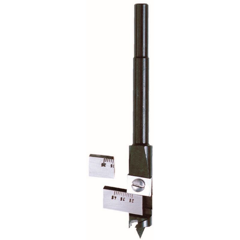 Serie Krino 05050 piatta al cromo vanadio. Codolo esagonale 10 mm. Per legno, multistato e truciolare. Misura 1. Diametro foro regolabile min/max 14,545 mm.