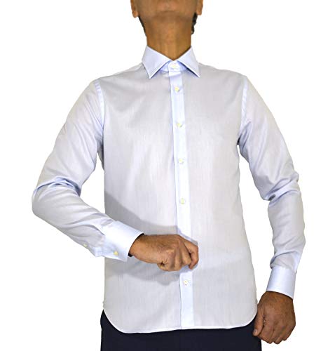 E. MECCI M02 Camicia Uomo Made in Italy 100% Cotone Non Stiro Slim Fit Manica Lunga (40 IT Uomo)