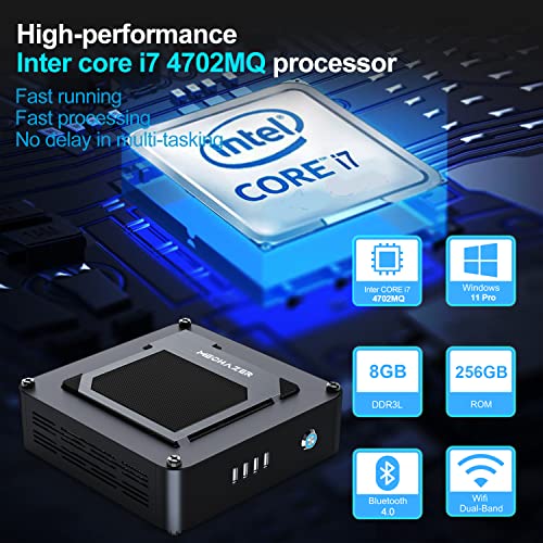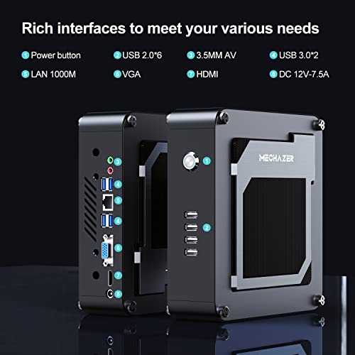 MECHAZER Mini PC Intel Core i7(fino a 3,6GHz) Z3 Windows10 Pro,computer desktop PC gamer,8GB DDR3L/256 GB SSD M.2,Bluetooth,espandi RAM e SSD,WiFi dual-band,Gigabit Ethernet,doppio display HDMI/VGA.