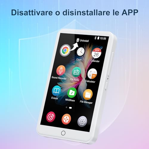 【Lettore mp3 con Bluetooth e WiFi】 Questo lettore mp3 portatile multifunzionale si collega tramite WiFi e Bluetooth. Viene fornito con un'applicazione preinstallata per musica e video, in modo da poter godere di multi-meadia sia online che offline.