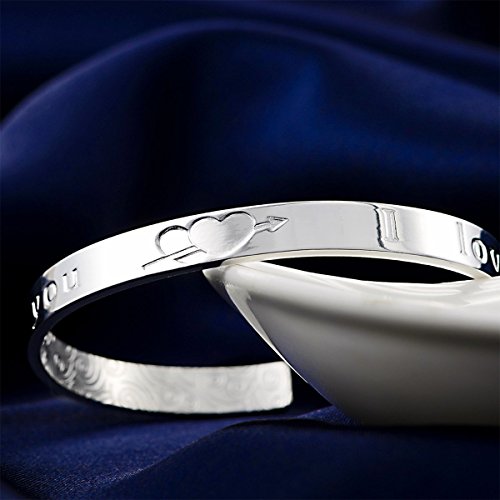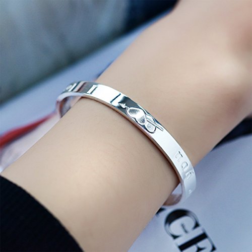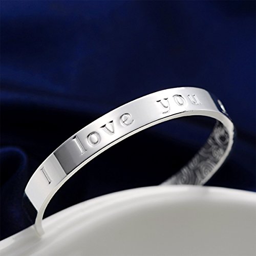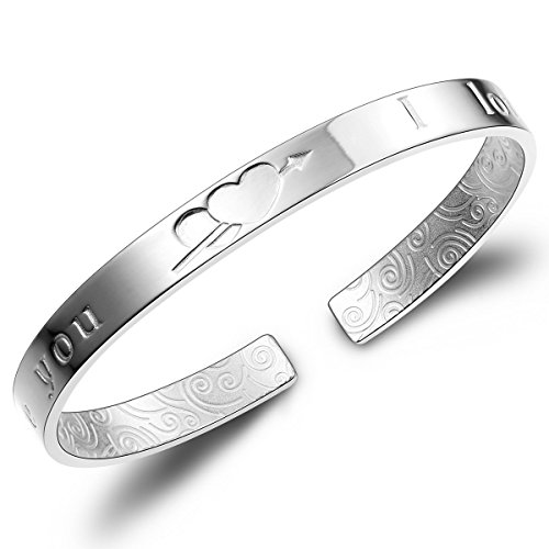 Mecool S999 argento Sterling braccialetto da donna"I Love You" Braccialetto del polsino aperto con design