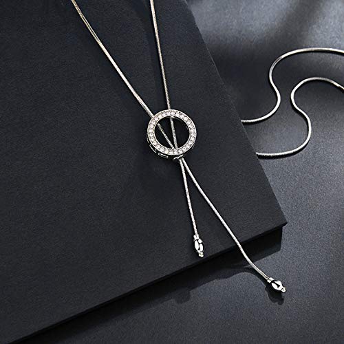 Mecool Collana lunga maglione Collana pendente lungo cerchio Collana lunga catena-Bianco