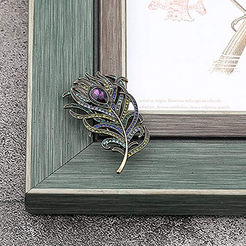 Mecool Spille da donna vintage con piume di pavone e piume di cristallo simulate con piume a goccia