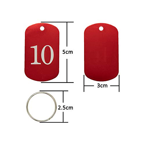 Medagliette con numeri incisi, medagliette identificative, in alluminio, con anello portachiavi (1-50, rosso)