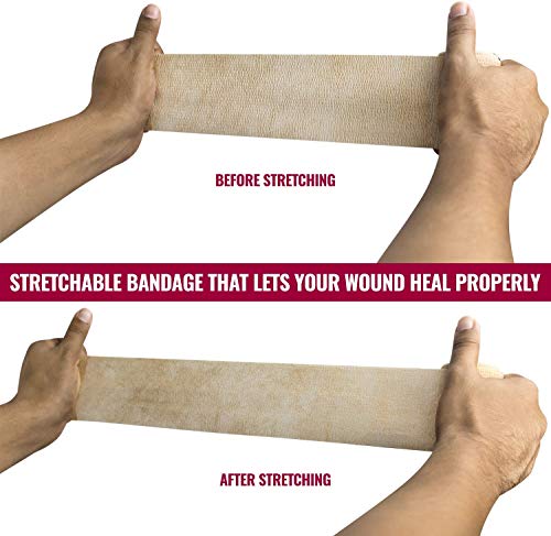 MEDca Bende Auto Adesive Coesive 3 Pollici X 5 Iarde 12 Pezzi con Elastico Forte Bendaggio di Primo Soccorso per Distorsione Gonfiore e Indolenzimento di Polso e Caviglia (Color Pelle)