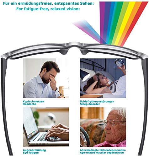 CONTRO LA LUCE BLU: Troppa luce blu proveniente dagli schermi di PC e smartphone o dalle lampade a LED affatica gli occhi, porta a problemi di addormentamento, mal di testa e probabilmente anche danni alla retina!