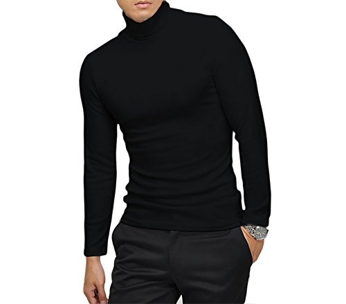 MEDIA WAVE store Maglia da Uomo MOD. Raphael VKA28 Interno Felpato Slim Fit a Collo Alto (M/L, Nero)