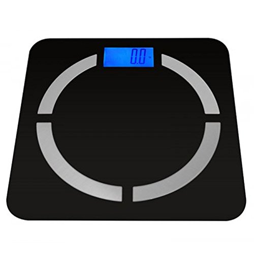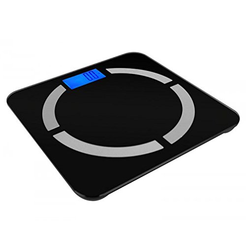 Mediatech Smart Bilancia digitale, bilancia per peso corporeo, contenuto di grasso, massa muscolare, massa ossea, BMR, BMI, LCD retroilluminato blu, piattaforma in vetro temprato, connessione senza fili