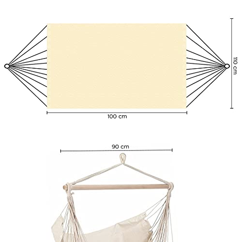 Mediawave Store - Amaca Poltrona Sospesa per Giardino ed Interni, Sedia a Dondolo in Cotone, Sedia Pensile Ecrù, Supporto in Legno Capacità 120 kg, Custodia, Comoda Poltrona Relax
