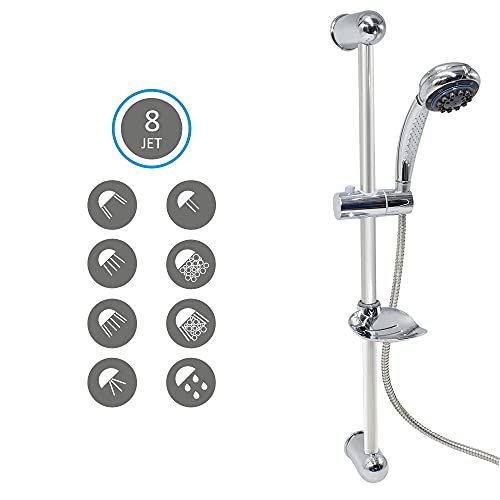 Mediawave Store - Kit Asta Doccia Saliscendi in Acciaio Inossidabile con 8 Getti di Acqua Diversi, Rubinetto Bagno, Doccia, Vasca, Saliscendi con Soffione e Porta Sapone Atena N083-5