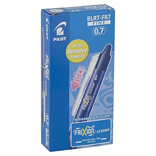 Mediawave Store - Pack 3 Penne Pilot Frixion Clicker 07 mm di punta, penna cancellabile removibile a frizione, inchiostro cancellabile, a scatto con punta a semi sfera, ricaricabile (Blu)