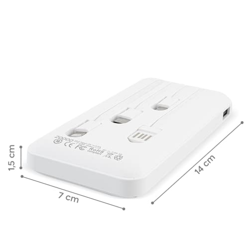 Mediawave Store - Power Bank 2000mAh Caricabatterie Rapido Portatile con 4 Cavi Inclusi USB, Caricatore per Smartphone Tablet PC da Viaggio, Ricarica Rapida, Tascabile (Bianco)