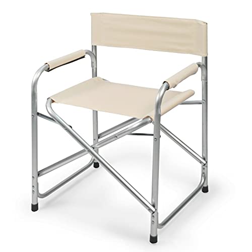 Mediawave Store - Sedia Pieghevole Regista 2964 in Metallo, Tessuto Canvas, Sedia da Campeggio, Spiaggia, con Poggiabraccio, Schienale (Beige)