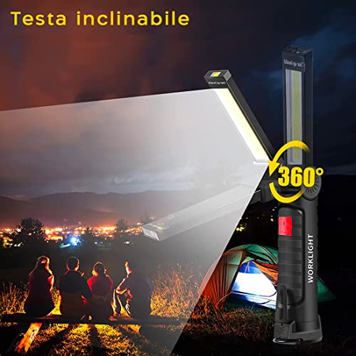 Mediawave Store - Mini Torcia Ricaricabile LED COB USB, Base Magnetica Snodata 360°, Lampada Luce Emergenza Lavoro, Impermeabile, Lampada da Lavoro Pieghevole Portatile, Luce Ispezione 400529