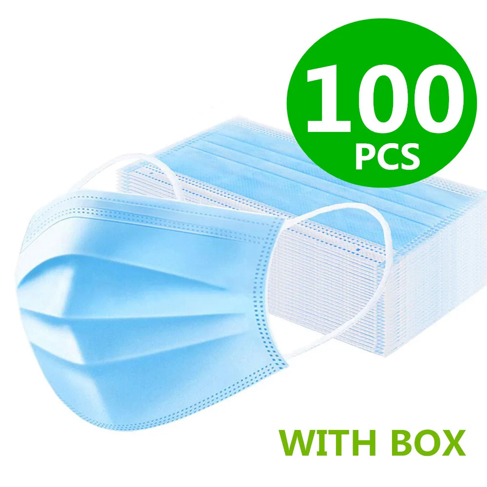 Medical Mask Disposable Face Mouth Mask Non-woven Filter Anti Medical Disposable Mask 3-Layers Protective Adult Blue Mask