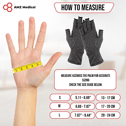 AMZ Medical - Guanti a compressione per arterite senza dita - Coppia) Guanti senza dita per uomini e donne - Ideale per artrite, artrosi, sindrome di Raynaud. (S, GRIGIO)