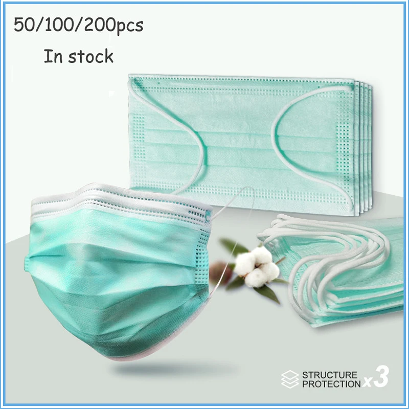Medical Mask 3 Ply Surgical Mask Dust Protection Medical Masks Nonwoven Disposable Ear Loop Medical Masks Green