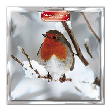 Medici Charity Christmas Cards MED6864, biglietti con motivo pettirosso, vendita a scopo caritativo per Marie Curie Cancer Care, Parkinsons, CLIC Sargent, Oxfam, Lifeboats, Macmillan, confezione da 8 pezzi