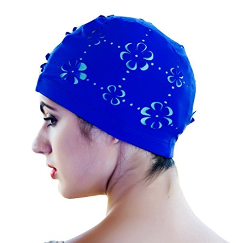 Medifier - Cuffia per capelli lunghi e corti, ideale per nuotare, decorata con fiori, Blue