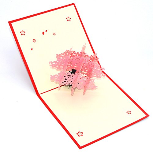 Medigy Pop-up 3D Biglietto d'auguri fatto a mano, Scheda in bianco,Fiori di ciliegio