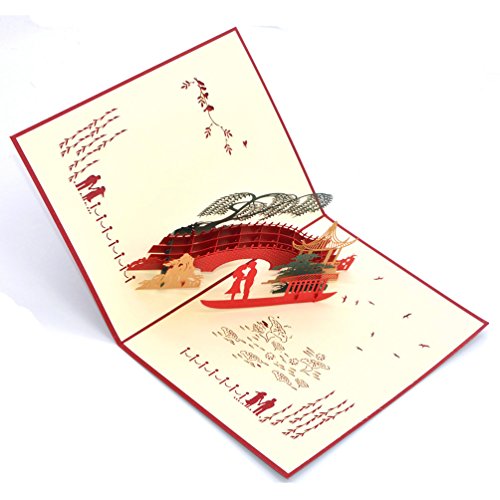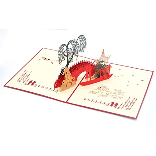 Medigy Pop-up 3D Biglietto d'auguri fatto a mano, Scheda in bianco,Piccolo ponte & acqua che scorre