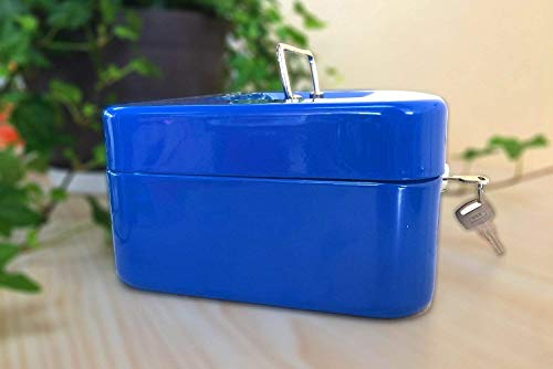 Dimensioni e colore: 15 * 12,5 * 7,6 cm, blu, perfetta cassetta di sicurezza per feste, cassiere di supermercati, raccolte di fondi e altro. Bordi curvi per renderlo comodo e sicuro da tenere