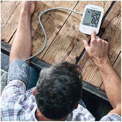 Per la parte superiore del braccio: Il bracciale è adatto a circonferenze del braccio da 22 a 36 cm. Ha un grande display che mostra i valori di sistole, diastole e polso, nonché la data e l'ora