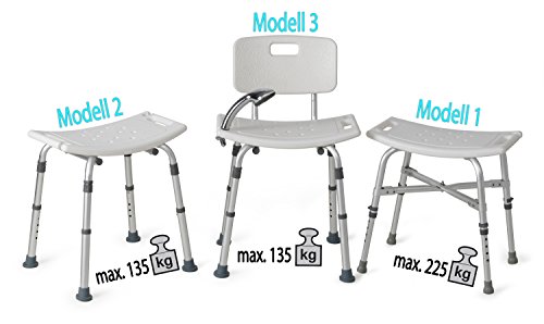 MedX5 (Upgrade 2019) Sgabello per doccia regolabile in altezza, sedia da bagno, sgabello da bagno, carico massimo: 135kg con rinforzi trasversali EXTRA