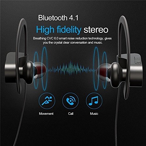 Meeaja cuffie, auricolari wireless sport Sweatproof auricolari Bluetooth (Bluetooth 4.1, design di ganci, 8 ore di riproduzione.) per iPhone e smartphone Android con gancio