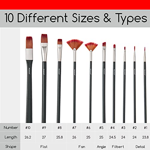 MEEDEN 10 Pezzi Pennelli Acrilici Professionali, Nylon Pennelli per Dipingere, Set per Acquerelli ad Olio per Artisti Bambini Principianti Amanti della Pittura-Nero