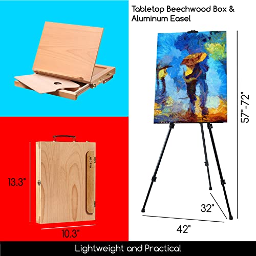 MEEDEN - 148 Pezzi per Pittura Artistica Set, con Cavalletto in Alluminio e Legno di Faggio, 96 Pittura, Tela Montata e Accessori, Ottimo Regalo per Artisti, Principianti e Adulti