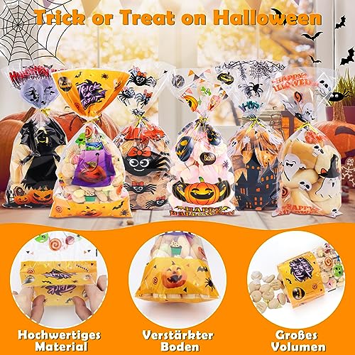 【Set di Sacchetti di Caramelle di Halloween】- Ottieni 180 caramelle di Halloween e 240 cravatte. Le nostre borse di cellophane di Halloween sono disponibili in 6 diversi disegni, 30 pezzi di ogni colore. Abbastanza per la tua festa di Halloween e l'uso quotidiano, puoi anche condividere con amici e familiari.