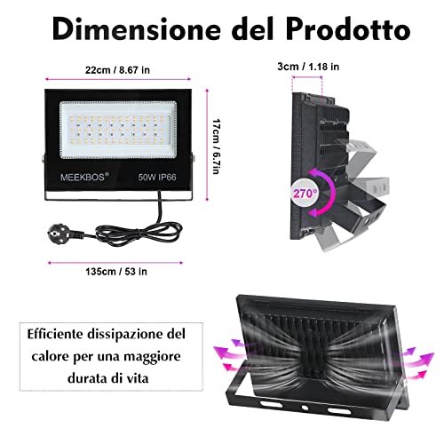 MEEKBOS Faretto LED RGB 50W, Faro LED RGBW Esterno Con APP Bluetooth e Telecomando,IP66 Impermeabile 5000 Lumen 3000K Luce Bianca Calda Dimmerabile Proiettore per Giardino,Pasqua,Partito,Halloween