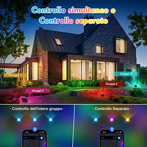 ✅【29 modalità di cambio colore】L'app Bluetooth dispone di 29 modalità di cambio colore, come "Strobe, Jump, Fade in and out". È possibile regolare facilmente la luminosità, il colore e la velocità di variazione del colore o la velocità stroboscopica. Perfetto per Halloween, Natale, festa, patio, giardino, portico, piscina, alberi, prato, stag