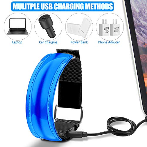MEEQIAO 2 Pezzi LED Bracciale, Impermeabili, Braccialetto LED Ricaricabile USB Catarifrangente con 3 Diverse modalità per Sport all'Aria Aperta, Corsa Notturna (Blu)