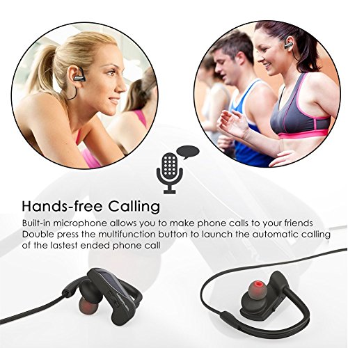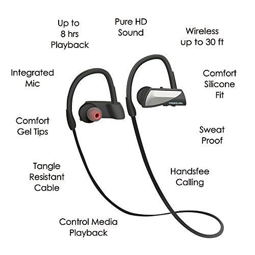 Meerveil Auricolari Wireless Bluetooth 4.1 Headset Stereo Cuffie Sportivi con Microfono cancellazione del rumore per Palestra Corsa e Trekking Compatibile iPhone 7 plus 7 6s Plus 6 5s SE, Samsung Galaxy S7 Edge S6 S5 Note 5 e altro Cellulari Android (Grigio)