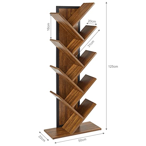 Meerveil Libreria ad Albero, Scaffale Autoportante in Legno a 9 Ripiani da Terra, Scaffale Porta Libri e Riviste Scaffale Portaoggetti, La Decorazione di Soggiorno e Ufficio, 50 x 22 x 125 cm, Marrone
