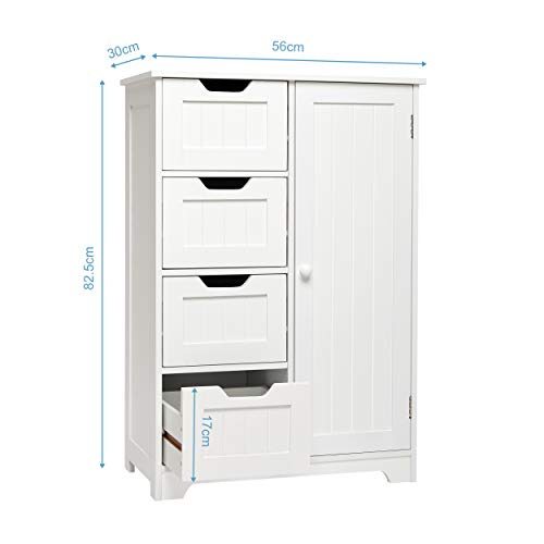 Meerveil Mobiletto Bagno, Armadietto da Bagno con 4 Cassetti e 1 Anta Ripiano Regolabile Stile Moderno Utilizzato in Bagno Soggiorno Camera da Letto Sala Cucina,Bianco