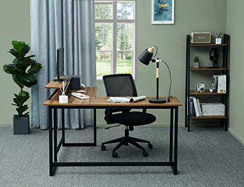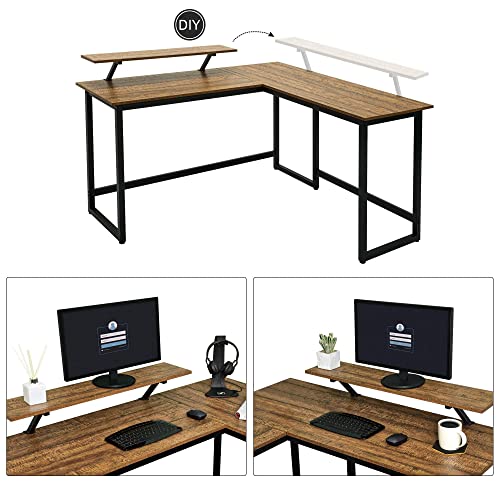 Meerveil scrivania a L, Scrivania per Computer Angolare, con Supporto per Monitor, 140 x 130 x 76cm, per Ufficio Studio Gaiming, Stabile e Salvaspazio, Facile da Montare, Stile Industriale, Marrone