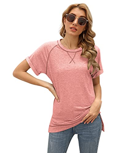 Meerway t Shirt Donna, Magliette Donna Manica Corta, Cotone,Girocollo,X-Line Decorazione sul Petto Rosa XL