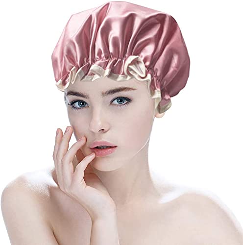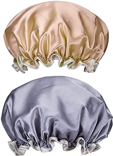 Meet-shop Cuffia Doccia,Riutilizzabile Impermeabile Cuffia da Bagno 2 Pack Donna Elastica Grande Showe Caps Donne Capelli Protezione per Donna Doccia Spa Salon (Grigio + Dorato)