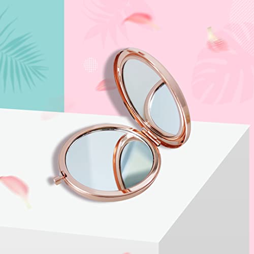 Meet-shop, Specchio Compatto,Portatile Specchio per Trucco 70 mm Compatto da Viaggio Specchio Specchio da Viaggio a due Lati Trucco per Viaggio, Lavoro, Bellezza, Trucco,Oro Rosa
