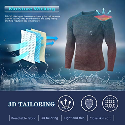 MeetHoo Maglia Compressione Uomo, Maglie Maniche Lunghe T Shirt Asciugatura Rapida Sportiva per Corsa Palestra Ciclismo Gym Fitness